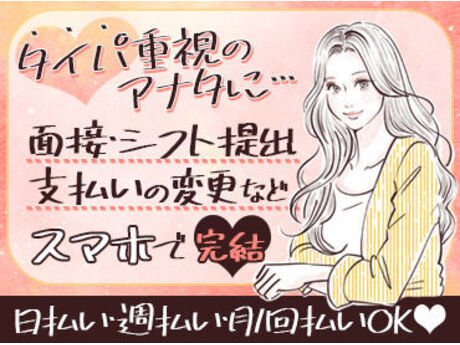 | 給与 | 時給1,500円(特別時給)※通常時給1,300円~ | シフト | 週2日以上 1日5時間以上 |